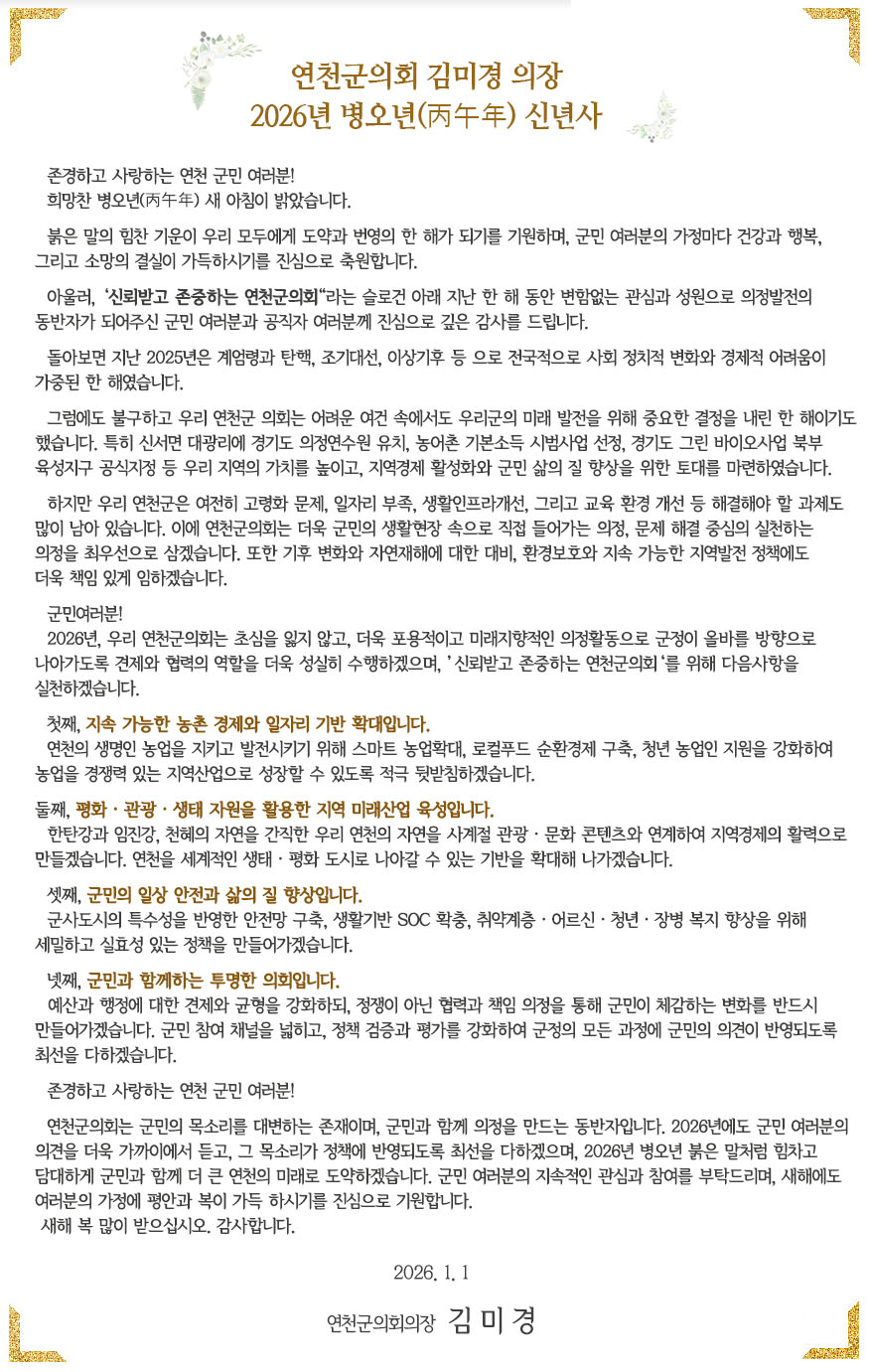 제298회 연천군의회 제2차 정례회 개회 안내
